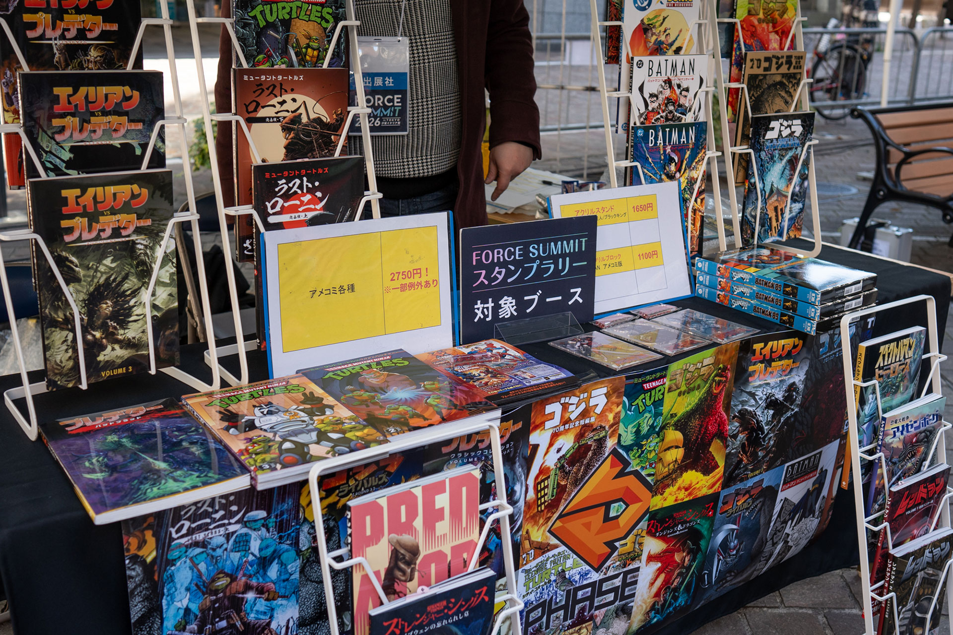 ブースは昨年からの連続出店であるSFバー「神田FLUX」やホビー専門店リユースショップ「ホビー買取王国高畑店」のほか、フィギア、アメコミ、アパレルなど、より幅広いタイプのお店が集まっていました。