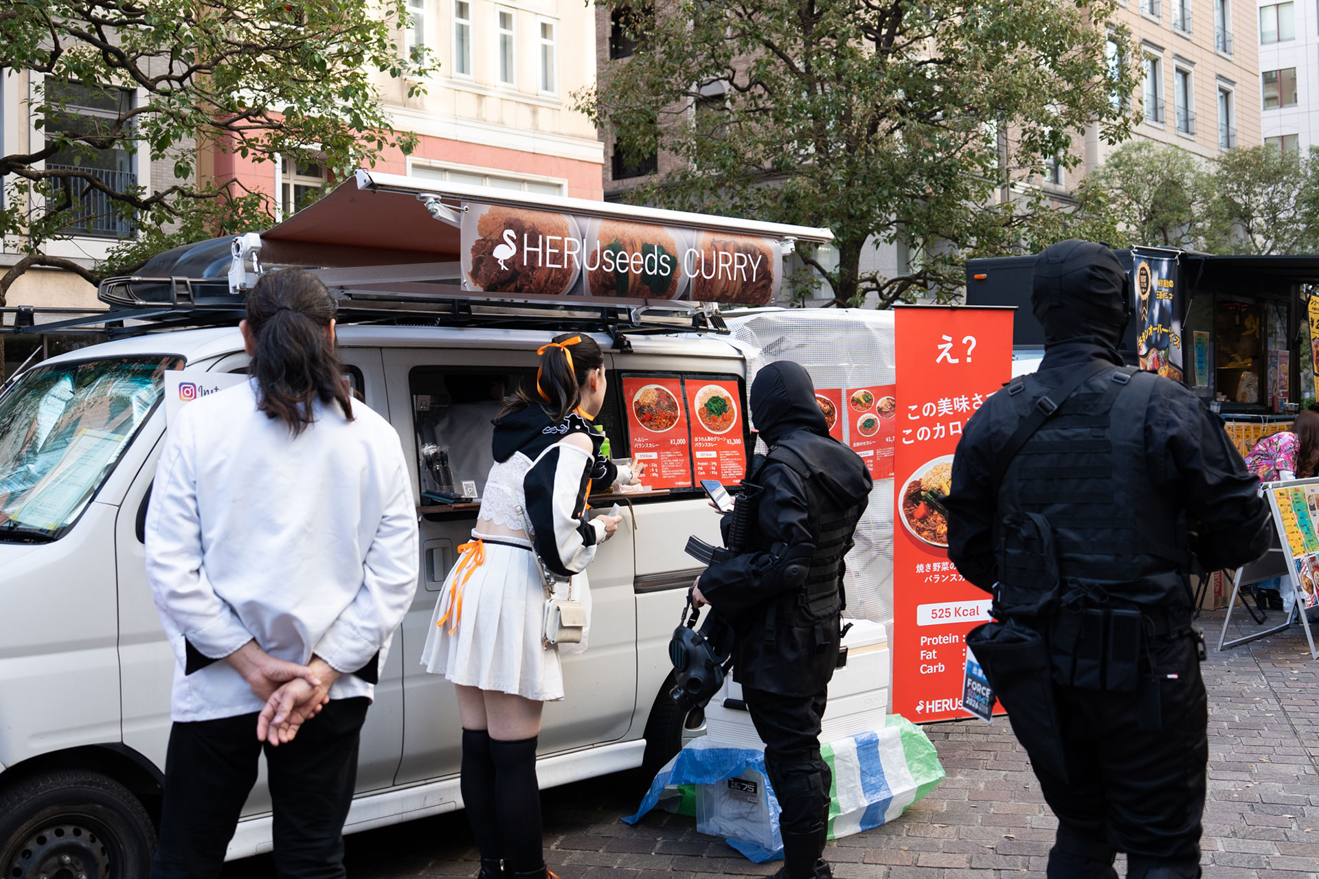 腹が減ってはなんとやら。アメリカンフード、ヘルシーカレー、焼きたてワッフルなどなど……、軽食からガッツリ飯、しょっぱい系から甘い系、とフード出店も充実していました。
