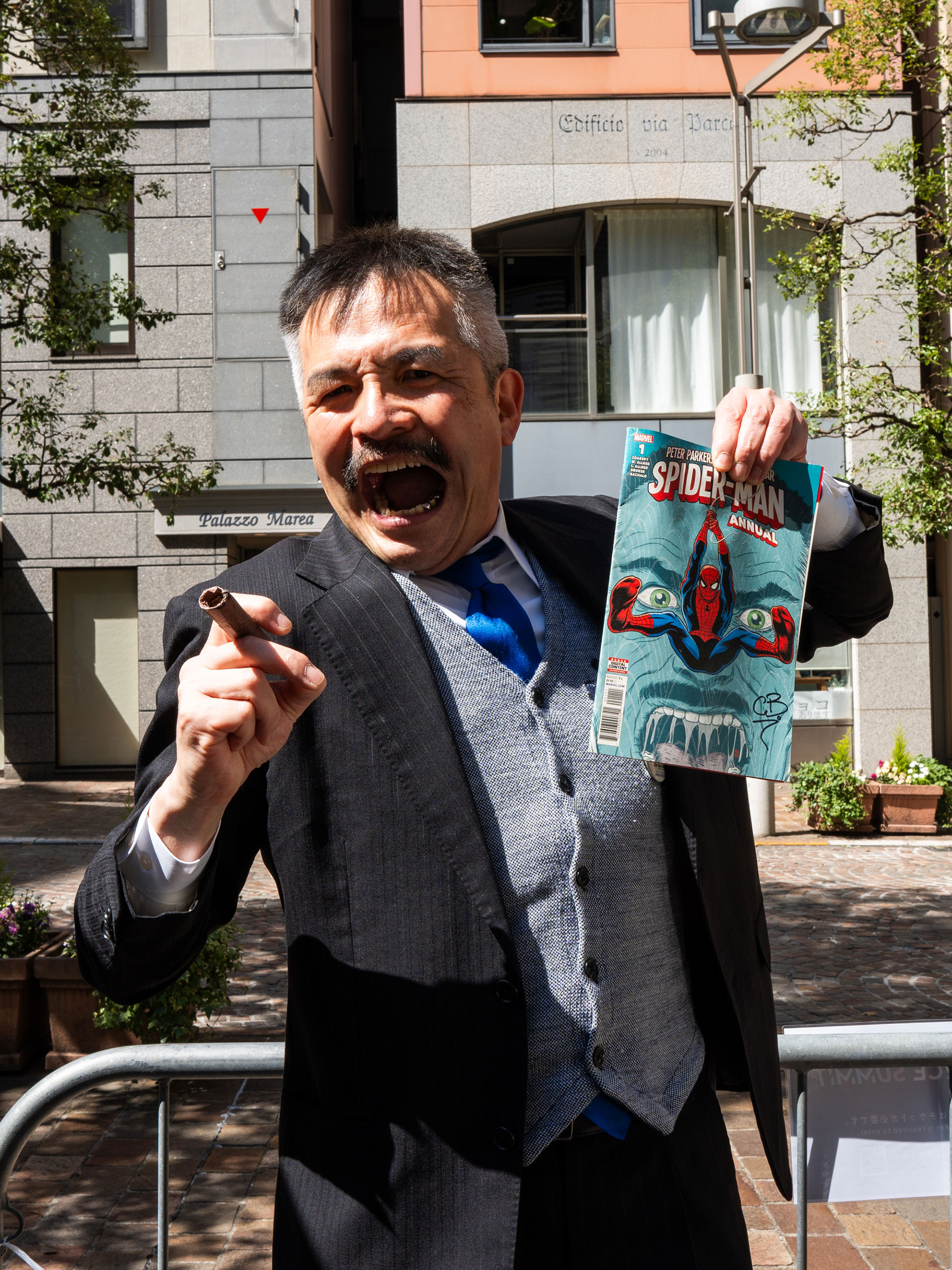 この日の晩は、映画『スパイダーマン:アクロス・ザ・スパイダーバース』の野外上映会も実施。スパイダーマンを敵対視するジェイムソン編集長も会場に足を運んでいました。