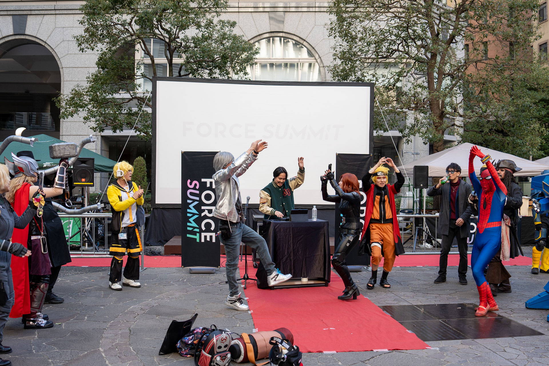 「FORCE SUMMIT」屋外会場の入り口にはフォトスポットも設置。そこでは自然と撮影会が始まっていました。