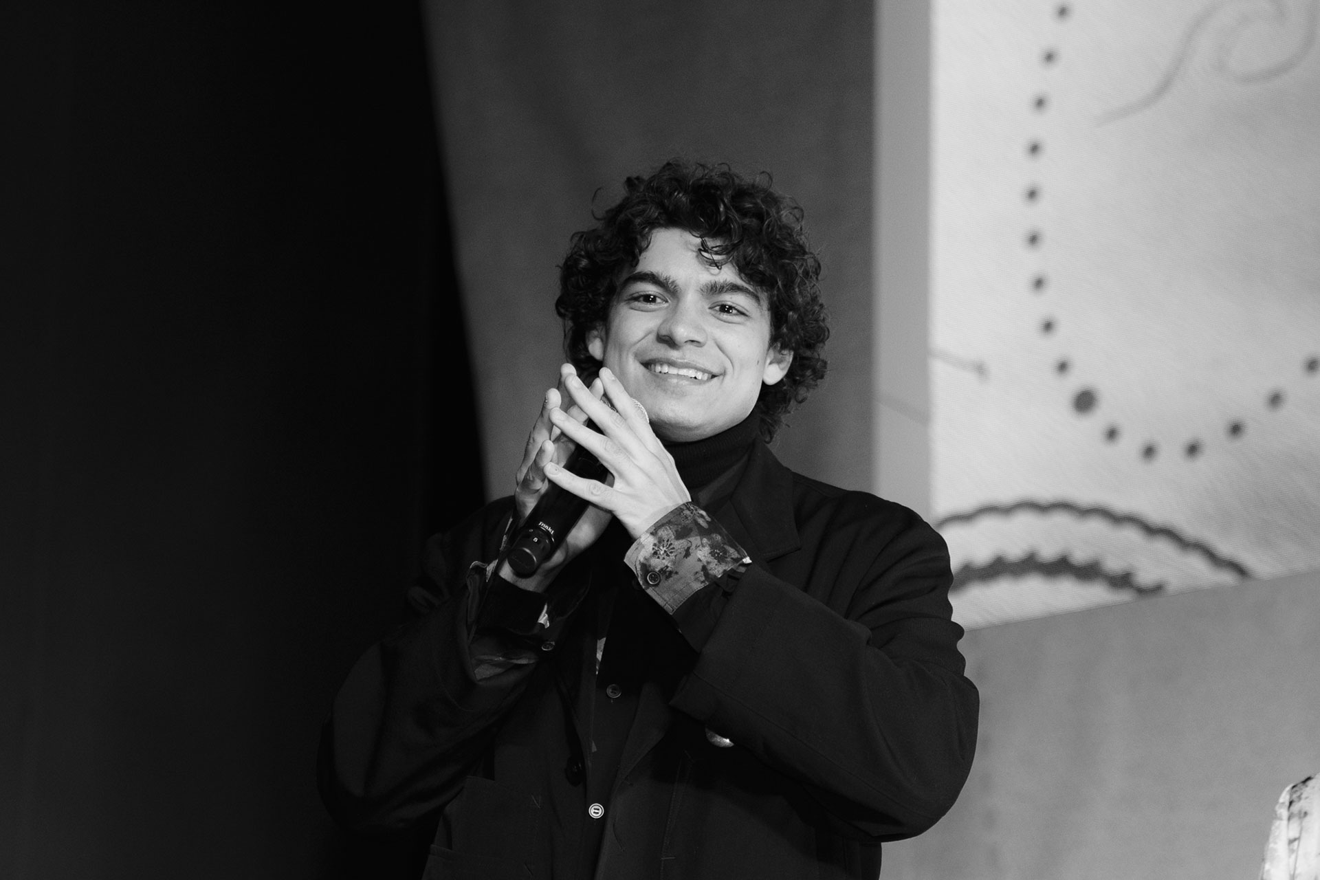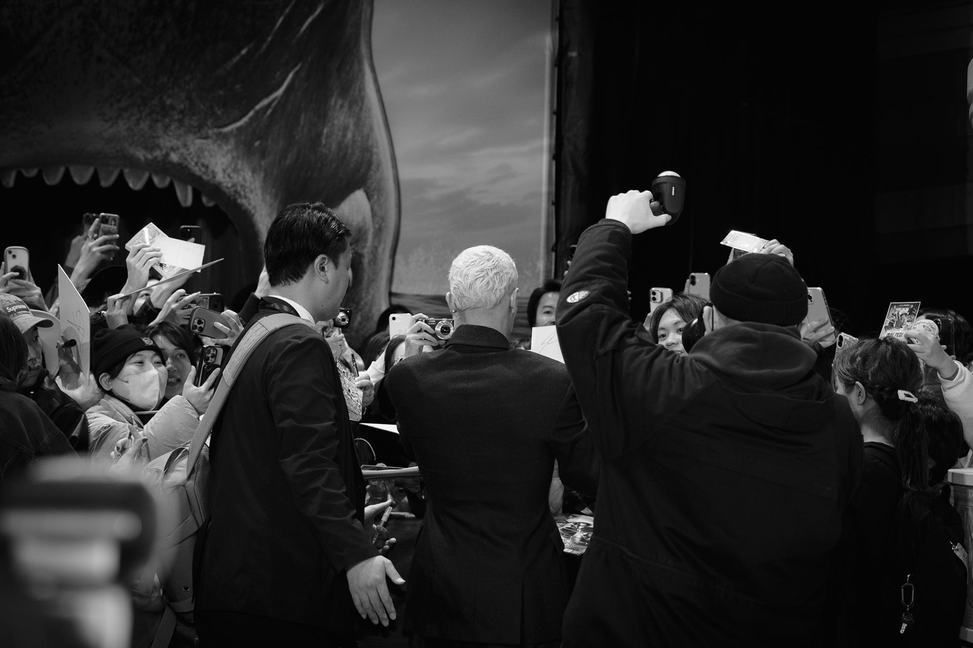 ジェイコブ、真剣佑、イニャキ、エミリー、タズの5名が一堂に介す姿を見て、会場からは大きな歓声が上がります。