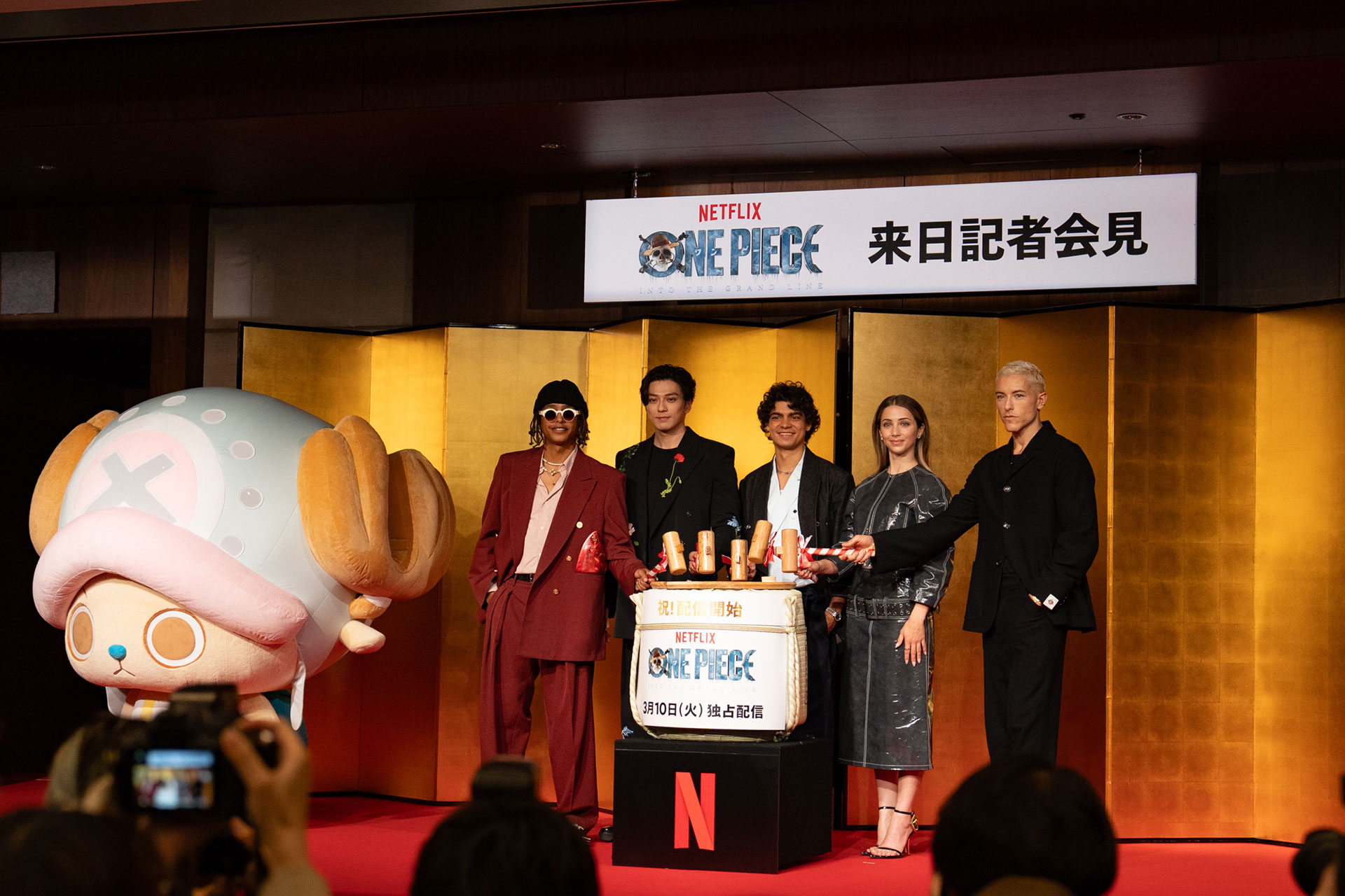 記者会見の後半では、チョッパーも登場し、皆で鏡割りをして締め括っていました。