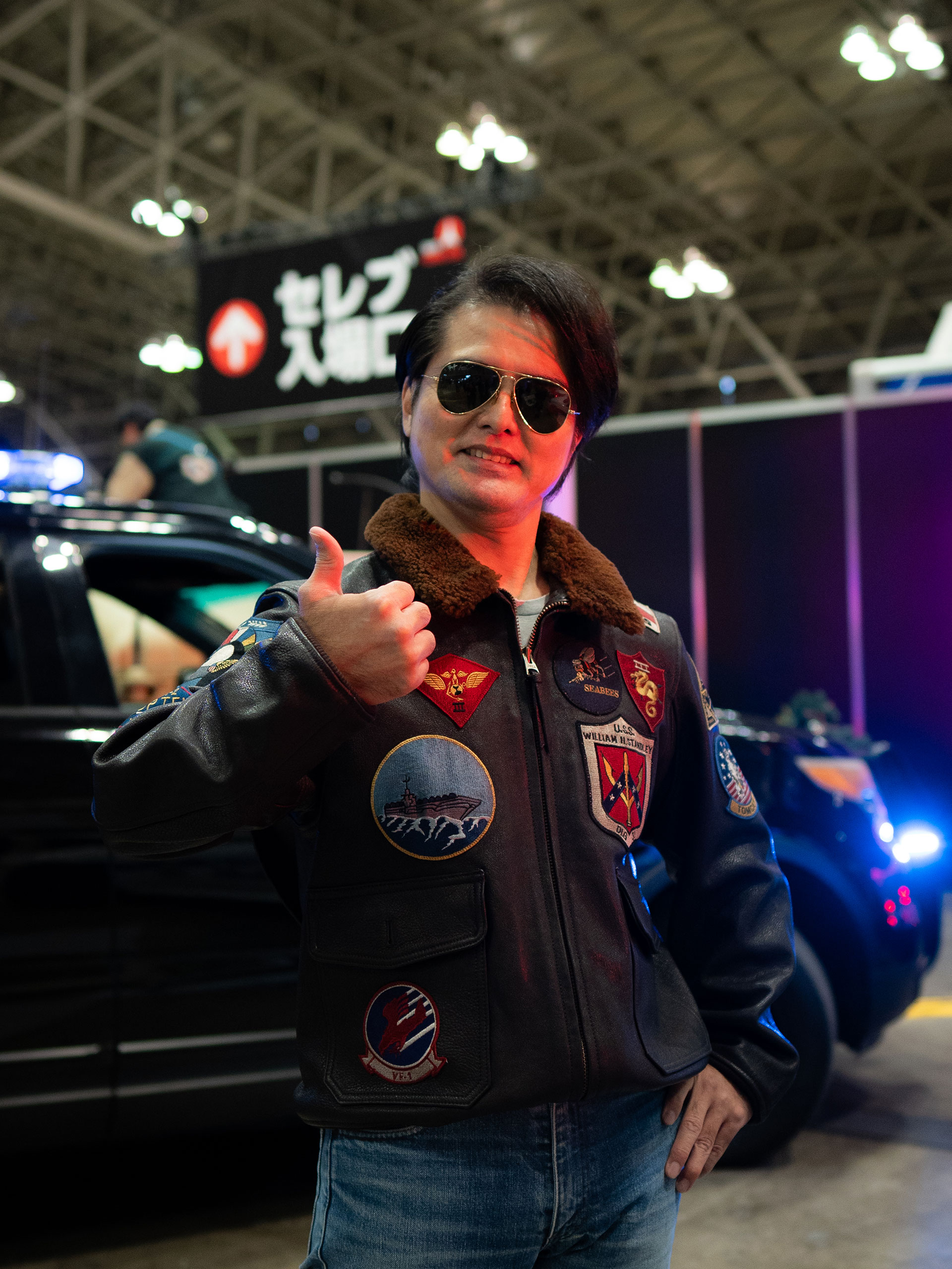 大阪コミコンでも体験できた、スーパーライドエリアのアメリカンポリスカーコーナーがパワーアップ! 自身もポリスオフィサーになりきれたり、逮捕される気分を味わえます。スペシャルゲストは、前回のジャッキーちゃん(@jackiechan_jp)に加え、琉球トム・クルーズ(@ryukyutom0220)! 「Danger Zone」がBGMで流れるなか、皆“マーヴェリック”ではなく“トム”と呼んでいたことなど、色々と愉快なブースでした。