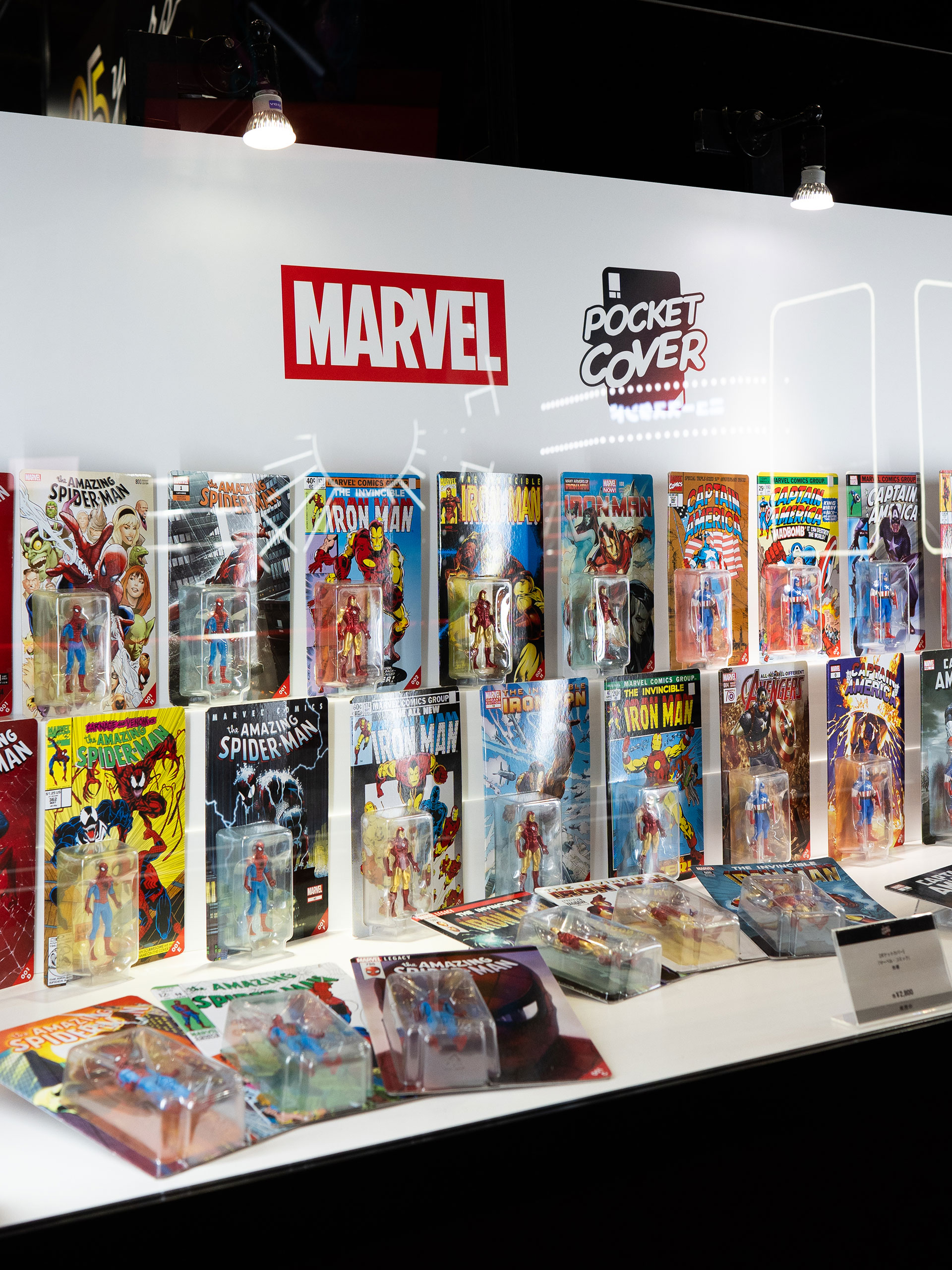 古き良きレンタルビデオ店をコンセプトにしたアパレルブランドVARIEGATORが東京コミコンに初出店。素材の質感やパッケージなどディテールにこだわっており、ファッショナブルにキャラものを身につけたい欲を満たしてくれるブランドでした。なお、MARVEL/STAR WARS POPUPにも、特別にコーナーが設けられていました!