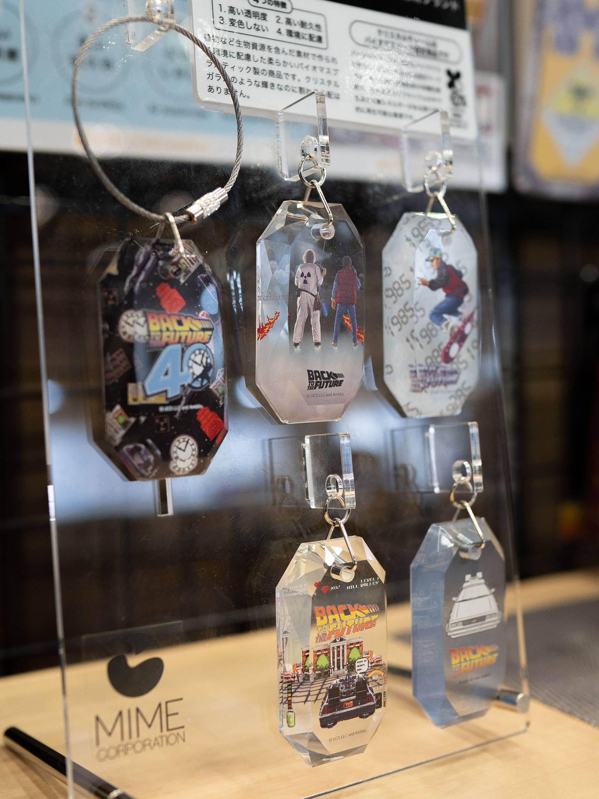 大々的に展開されていた、『バック・トゥ・ザ・フューチャー』(以下、BTTF)公開40周年記念ブース。日本人アーティストとのコラボレーションアートの展示をはじめ、ギブソンの作品トリビュートモデル、スポーツ年鑑といった劇中の小道具などが展示されており、大量のグッズが販売されていました。8,800円以上購入すれば、デロリアンと記念撮影も可能に。