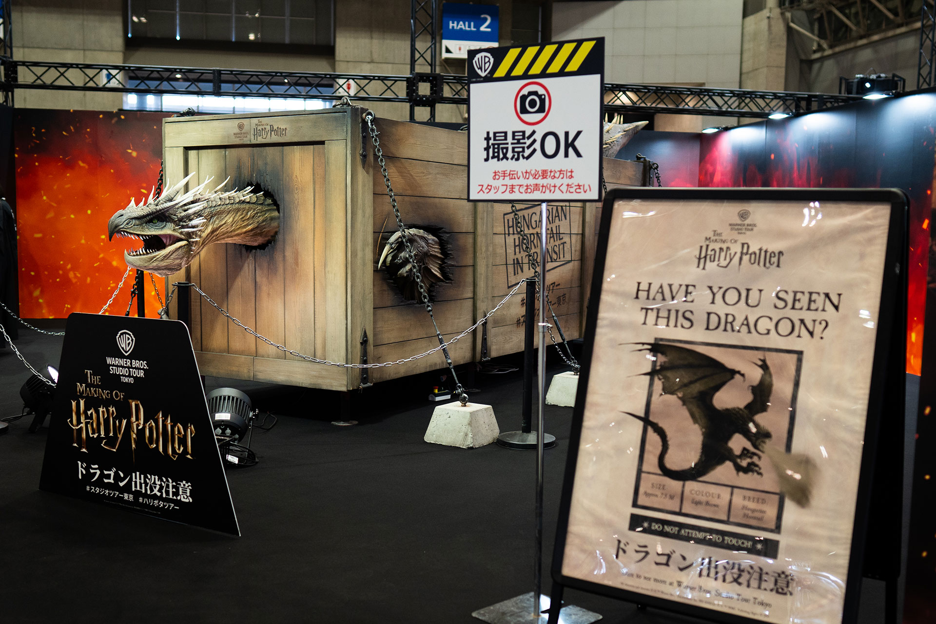 「Warner Bros. Discovery Booth」では、映画『ハリー・ポッターと炎のゴブレット』に登場したドラゴンの模型の展示や、DC関連の展示など、いくつかフォトスポットが設けられ、グッズコーナーでは、『バットマン』関連が豊富でした。