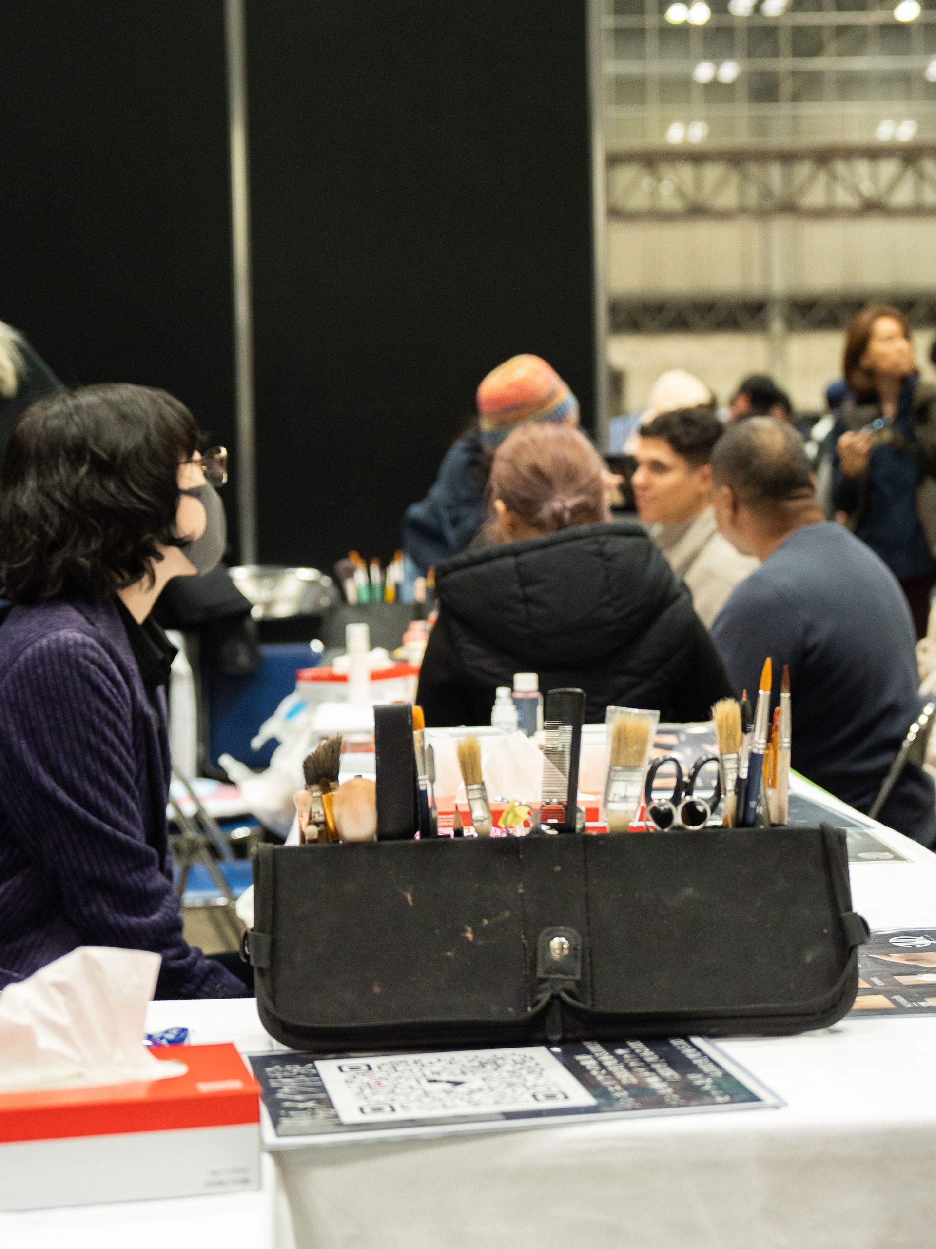 スーパーライドエリアに出展していた、特殊メイク造形スクールAmazing School JURによる「傷メイク体験」のブース。この日は、ジョン・ウィックのコスプレイヤーさんが、コスプレの“仕上げ”として利用されていたところをキャッチ。約10分と短い時間で本格的な傷メイクを体験できる場になっていました。