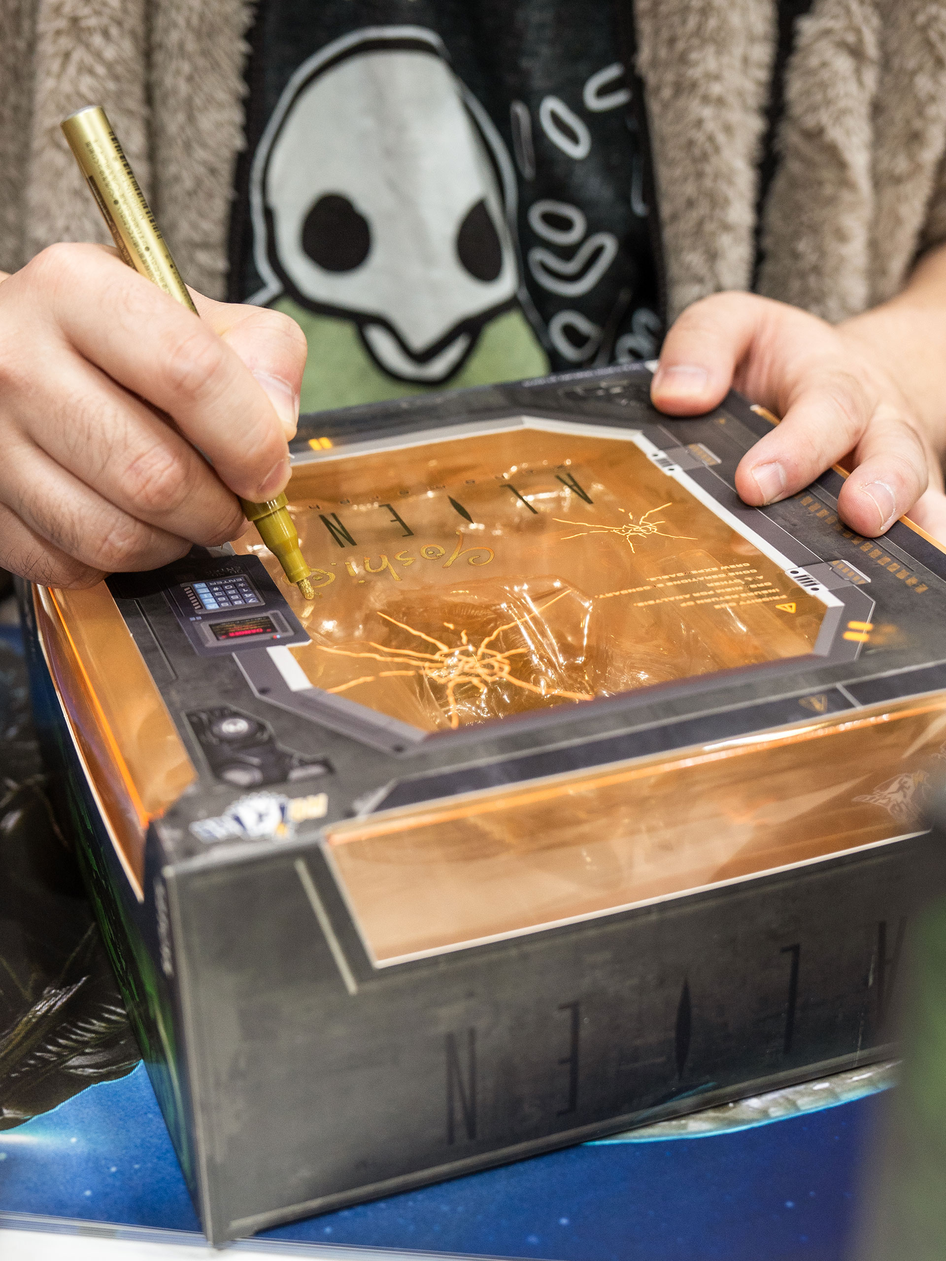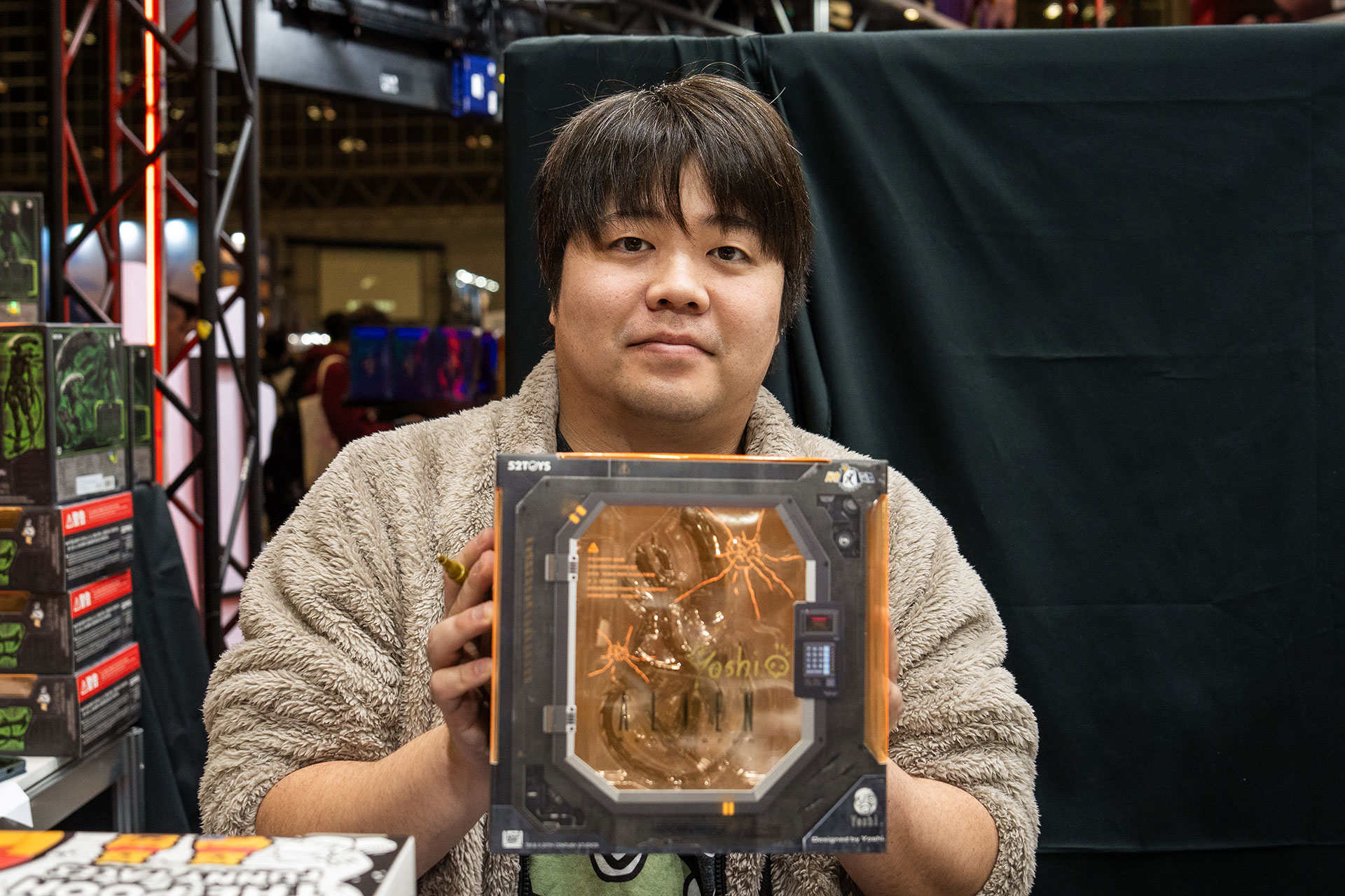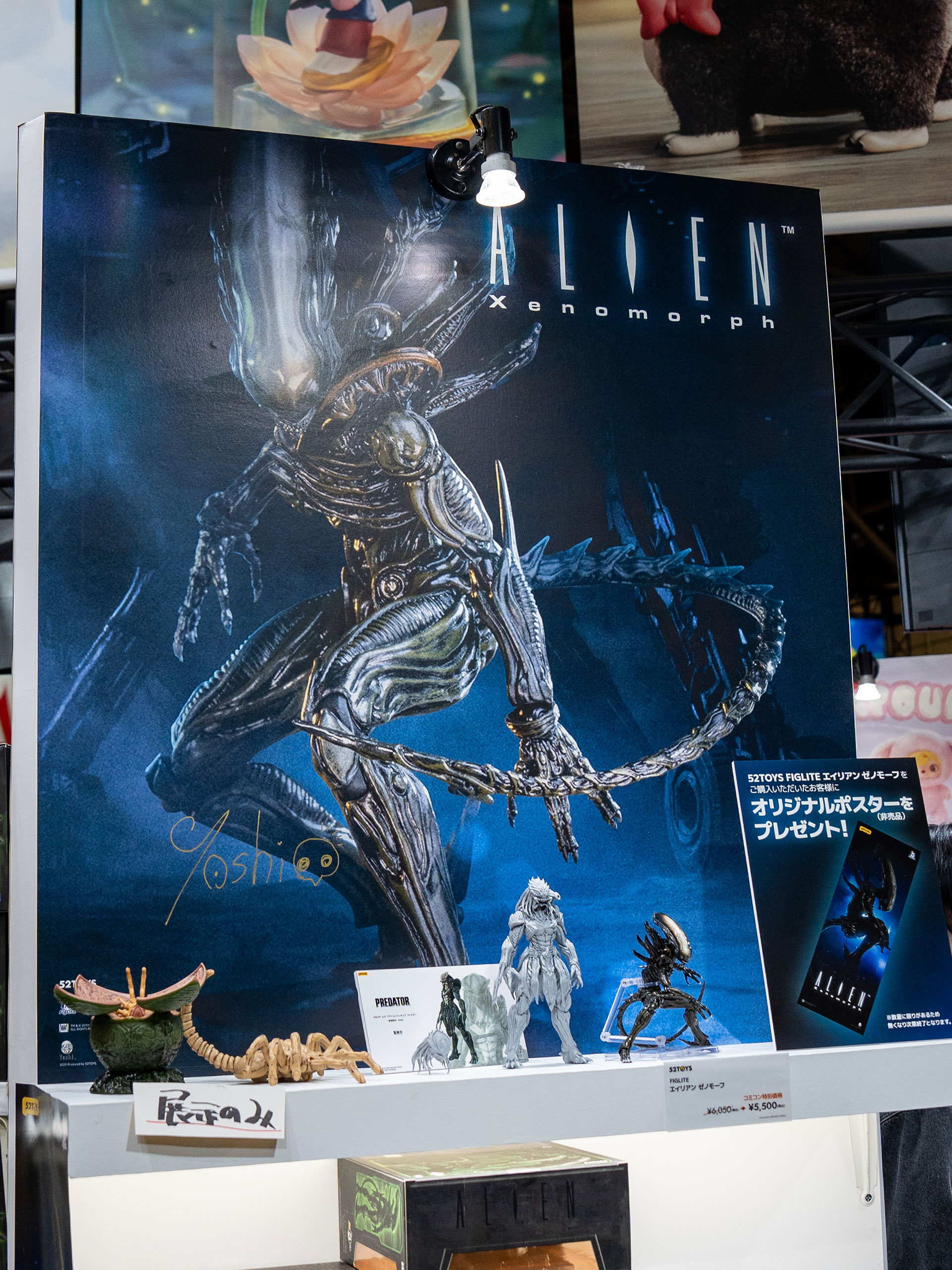 遊んで楽しい可動性フィギュアで来場者の心を奪っていたのは、52TOYS。人気造形作家Yoshi.さん(@yoshi_tsumugibako)によるゼノモーフ(『エイリアン』)のフィギュアが特別価格で先行販売されており、2日目にはYoshi.さんのサイン会も実施!